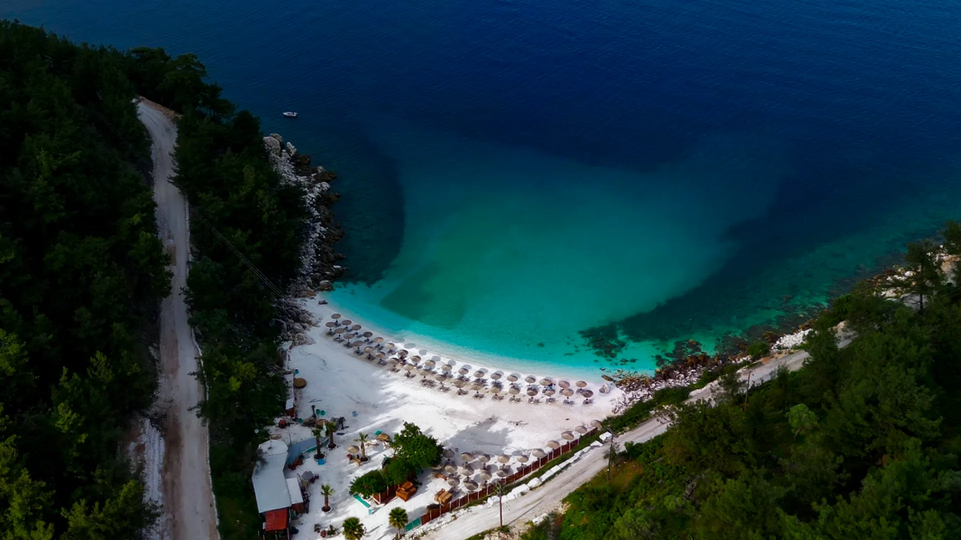 Saliara Beach Thassos, also known as Marble Beach, is a stunning natural treasure on the northern side of Thassos, about 7 kilometers from Limenas city center (between Makryammos and Vathi Beach). This small, exotic beach is a true marvel with its unique white marble pebbles, creating an extraordinary landscape that looks more like a snow-covered shore. One of the beach's unique characteristics is that the pebbles are always cool, offering a pleasant walking experience in and out of the water, even during the summer heat.