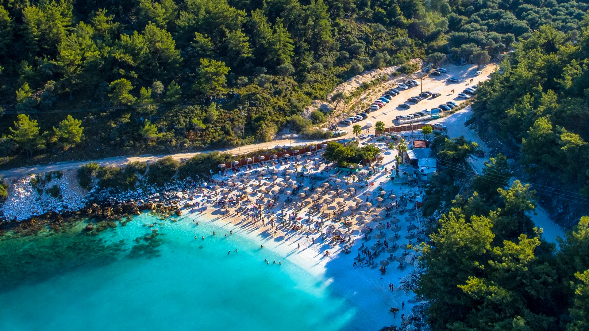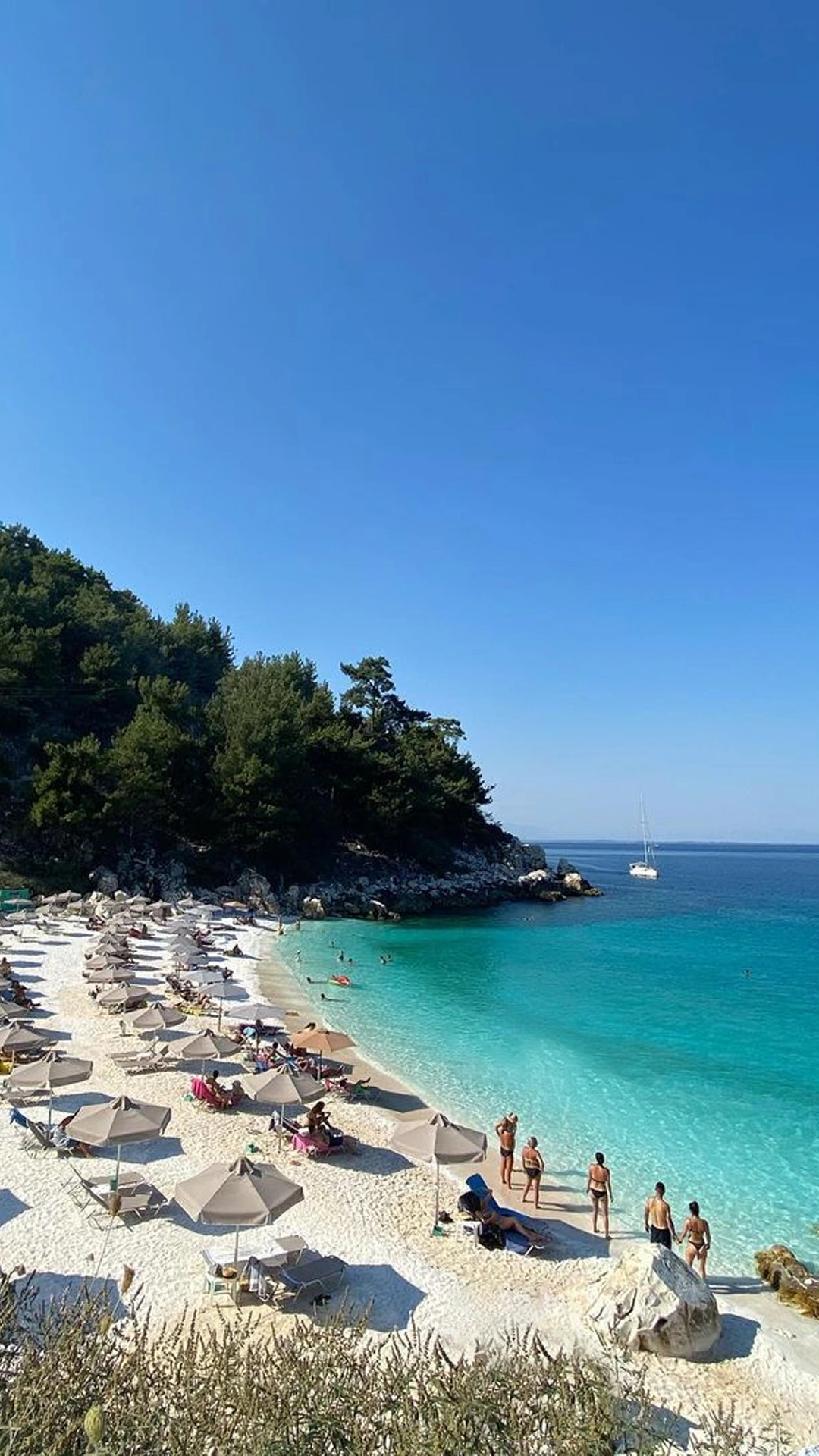 Saliara's exotic appeal and breathtaking waters have become a popular destination for visitors and sailing boats. Despite its popularity, especially in the peak season, the beach retains its natural charm. It's well-equipped with sunbeds, umbrellas, and a beach bar, offering all the comforts for a perfect beach day. Arriving early in the morning is advised to secure nice sunbeds by the sea and good parking spots.