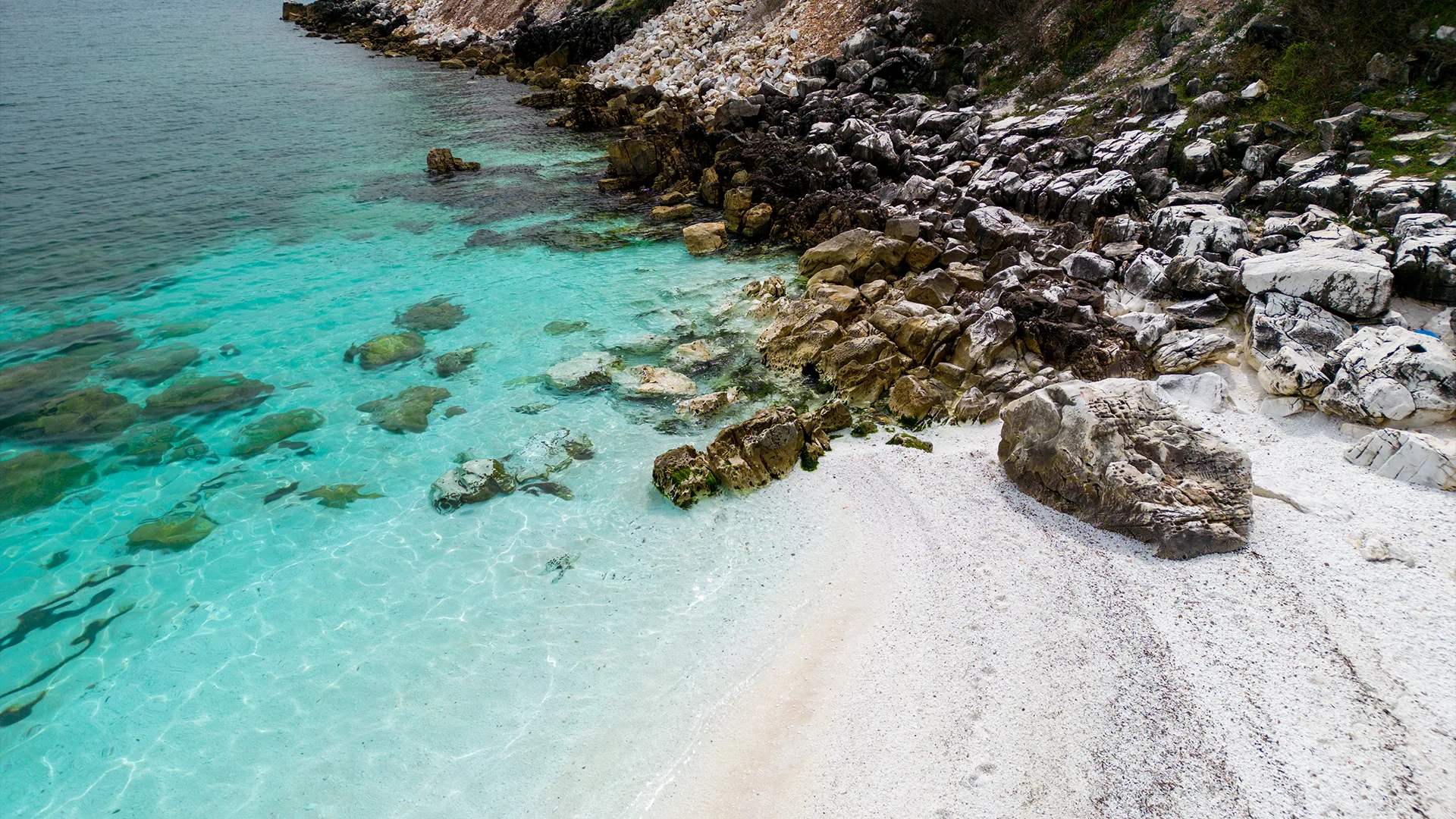 The surreal beauty of Saliara Beach lies in its water's gentle blue hue, reflecting off the white seabed with the marble pebbles, which is gradually deepening. Snorkeling enthusiasts will have a fantastic time here in Marble Beach Thassos. To reach this beautiful place, head towards Makryammos and take a left just before the hotel entrance onto a wide but dusty dirt road. Although improved, the journey requires careful driving. Upon arrival, a parking area awaits beachgoers.