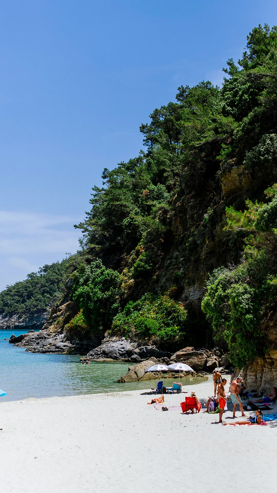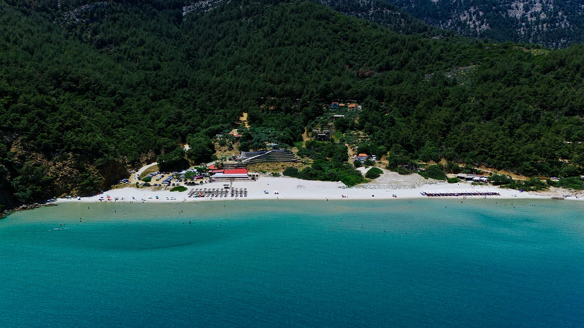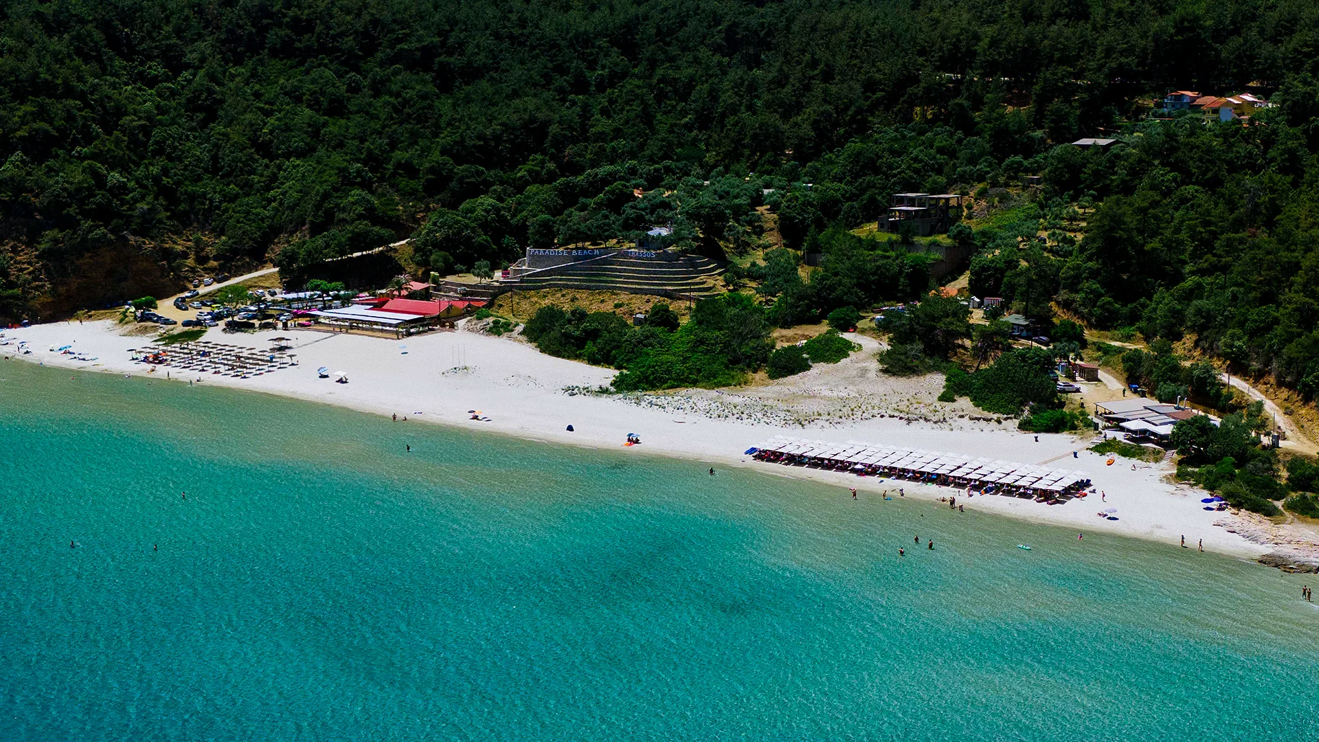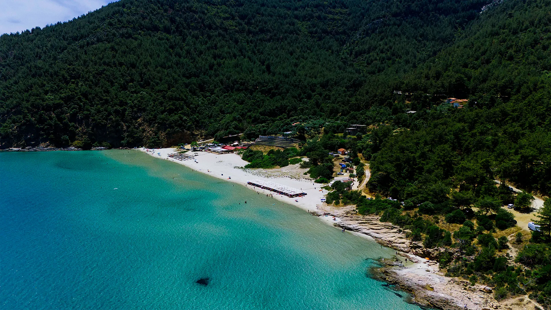 Paradise Beach was a famous nudist beach in the past decades because it is secluded by the thick trees of the forest. Although this is not the case anymore, there is a nudist section on the rocky part of the beach, which is not visible from the main beach and offers privacy to those who enjoy swimming and sunbathing in more natural ways.
