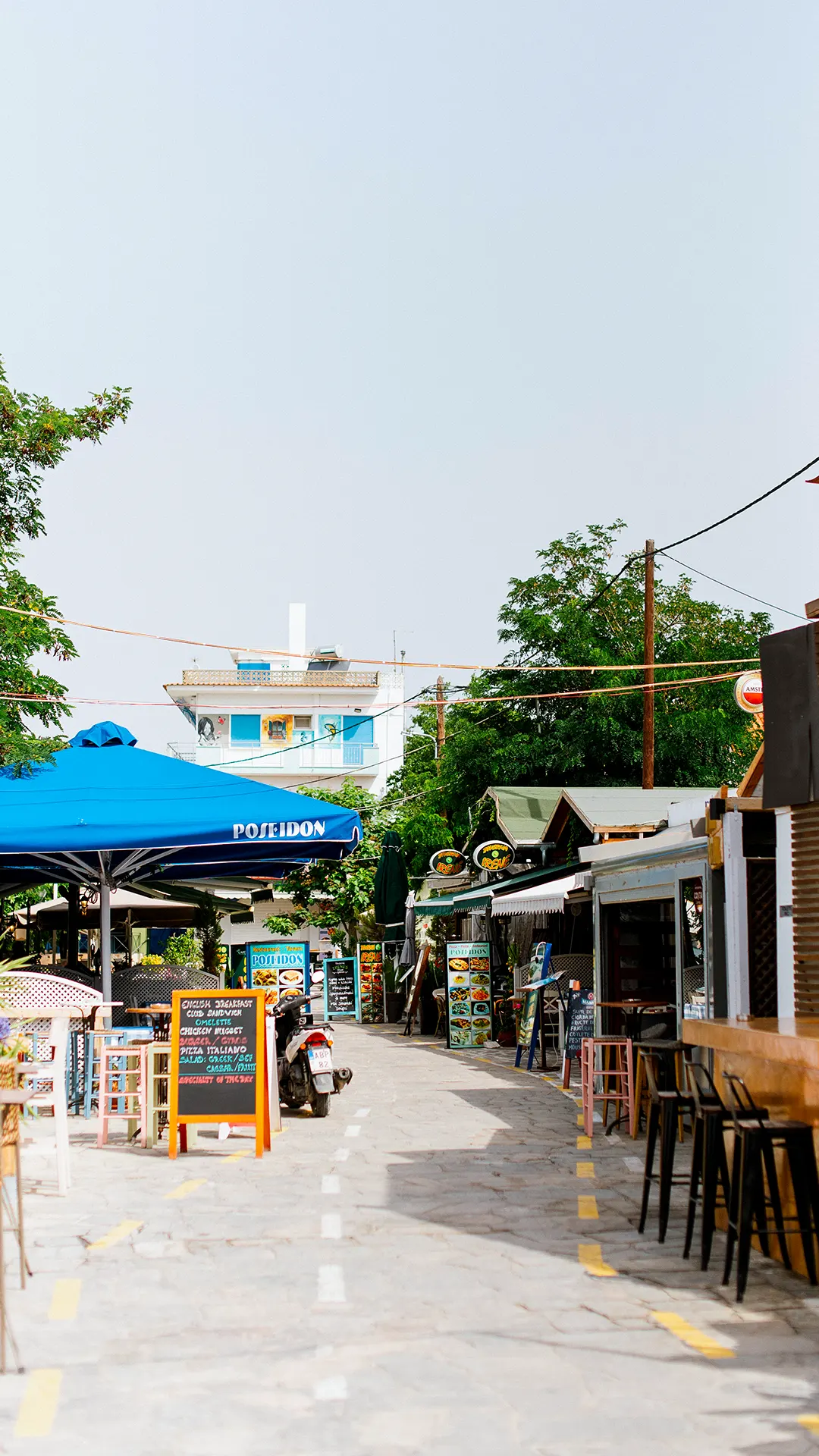 In the village's restaurants, you will find delicious food on the menu, like exquisite fish, seafood pasta, fresh appetizers, cool beers, tsipouro (Greek liquor), ouzo (Greek anise-flavored aperitif), and authentic Greek dishes such as pastitsio and moussaka. You will also find lovely places for breakfast and brunch. The local honey is a distinct product of the area, and you can get it from the quaint small shops selling local Thassos products.