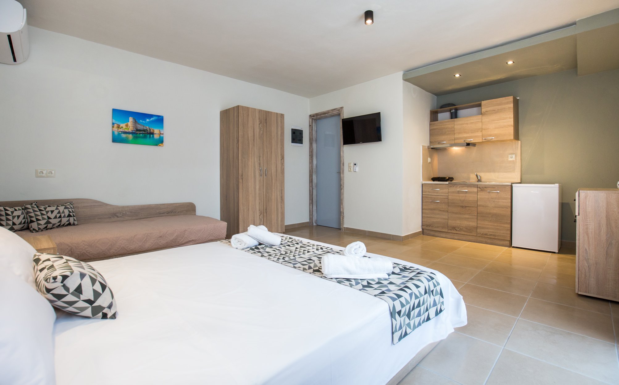 Nestled just steps away from the historic Palataki landmark and the bustling marina, Studios & Apartments Elisabeta offers a rare combination of village-center living and effortless access to the emerald Aegean waters.